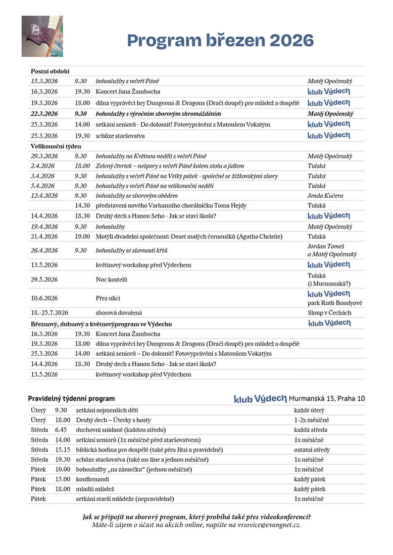 Sborový program BŘEZEN 2026